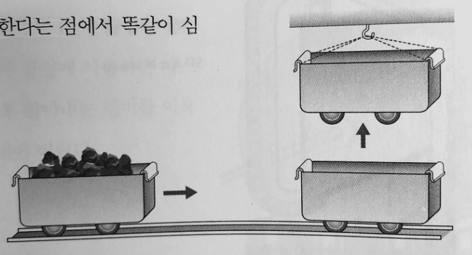 탄광의 갱도 마지막 끝 부분에서 탄을 캐내면 그것을 실어 나를 화차는 갱도의 끝부분까지 진입해야 한다. 하지만 갱도의 끝은 석탄을 파내고 있는 부분이므로 대개는 좁은 공간이다. 이 공간에서 두 개의 화차가 평행하게 회전하는 것은 어려운 일이다. 그림과 같이 화차를 들어서 교환을 하면 가능하다. |