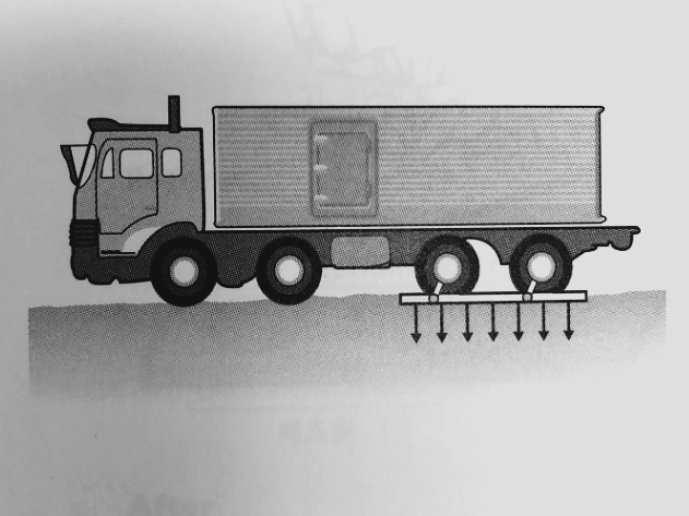 전쟁과 같은 상황에서 도로의 상태는 좋지 않을 것이다. 화물차가 웅덩이에 빠지는 경우 큰 화물차를 웅덩이에서 나오게 하는 것은 쉽지 않은 일이다. 그림과 같이 보조 장치를 이용하여 웅덩이서 빠져나오게 할 수 있다. 사실 이 원리는 스노우체인과 다를 것이 없으며 탱크 등에서 사용하는 무한 궤도(캐터필터)와도 같은 원리이다. |