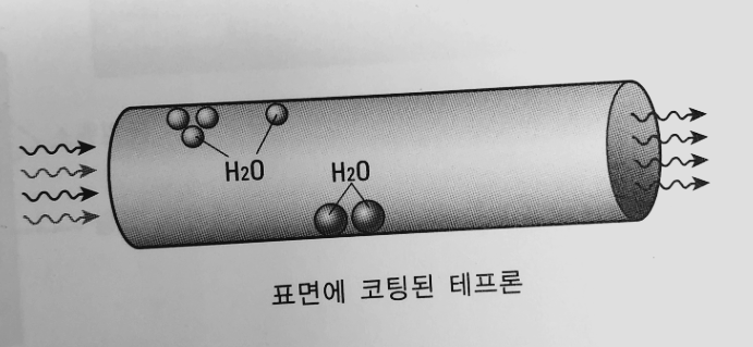 특정 물질을 코팅하는 장비가 있다. 코팅될 물질이 지나가는 통로를 그림에서 나타내고 있다. 이 장비는 3개월에 한 번씩 전부 개폐하고 물로 씻어내는 청소를 한다. 문제는 청소 후 아무리 건조해도 남아 있는 습기 때문에 생산 전 3일을 준비 가동을 해야 하기 때문에 생산 차질이 막대하다. 장비에서 문제가 되는 표면을 테프론(Teflon)으로 코팅을 한다. 테프론은 물기를 표면에서 밀어내는 역할을 하기에 습기를 제거하는데 도움이 된다. |